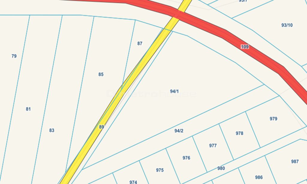 Odcinek wzdłuż sąsiadujących działek ma długość 192 m w linii prostej.